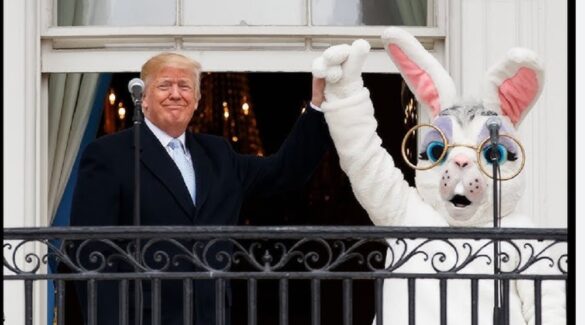 WASHINGTON, D.C. — As grocery shelves across America remain barren of eggs, President Donald J. Trump hosted the most opulent White House Easter Egg Roll in U.S. history, featuring over 30,000 real eggs, a 14-karat golden chicken coop, and Melania Trump in a $1.7 million Swarovski-crusted bonnet whispering “Let them eat deviled eggs” to stunned onlookers.